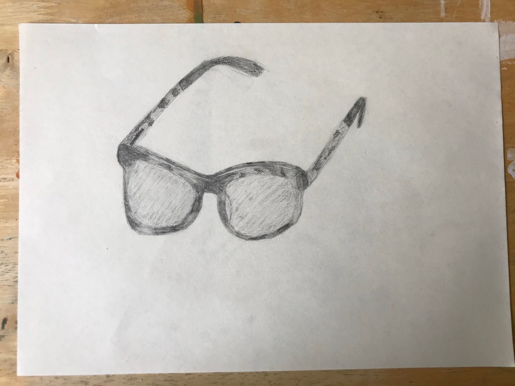 I decided to draw a pair of glasses, specifically because in assignment one I panicked about drawing my own glasses ‘correctly’ and instead traced them. I thought it would be good to learn how to draw them, and how to get a feel for them.