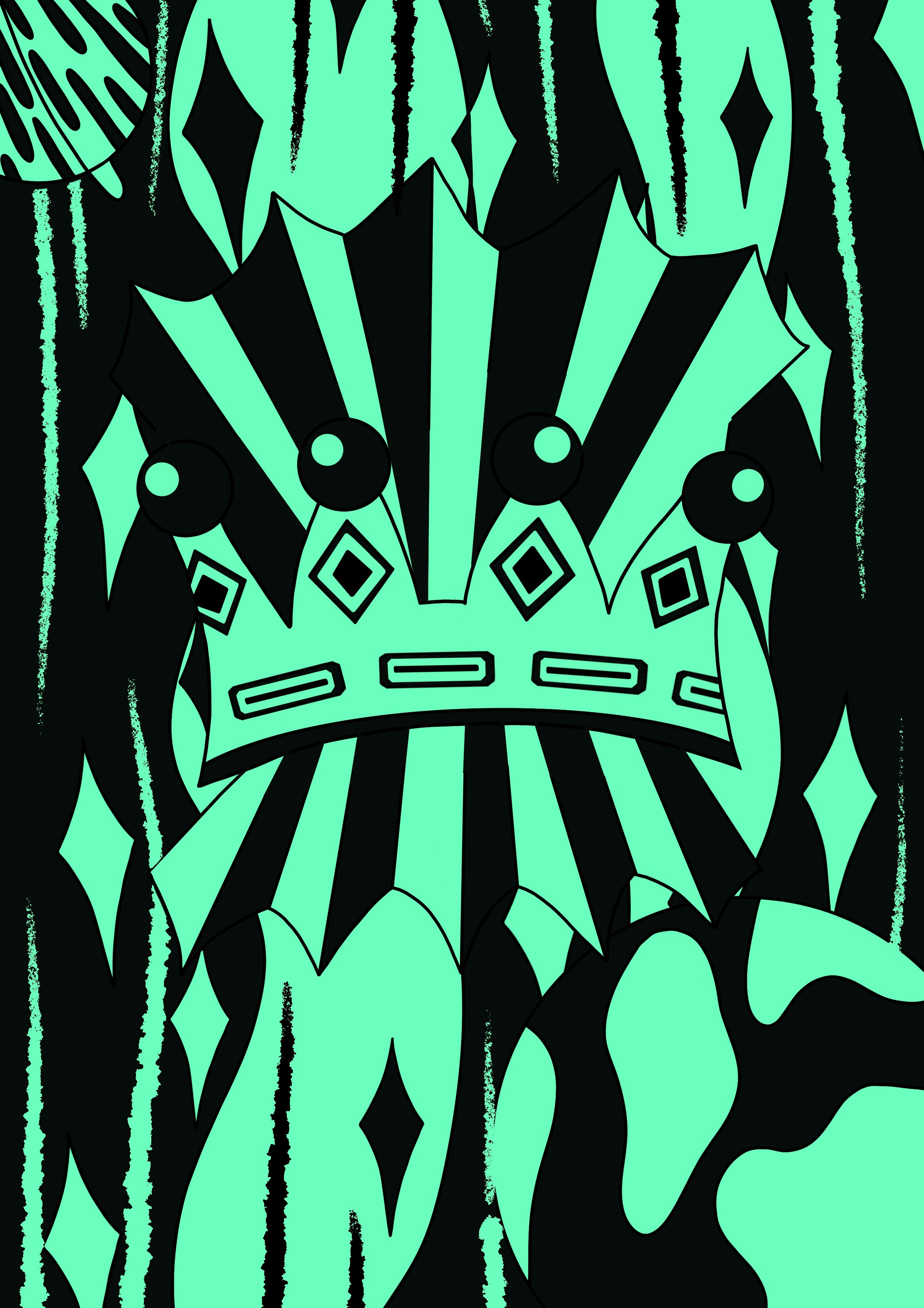Comparing my original line art to the finished piece, I feel like the black and white have helped exaggerate the concept of ‘extraordinary’ even further. The stark contrast between the empty space and black blocking shows clearly what’s being communicated. The illustration is still abstract and therefore not completely clear on meaning, but what is clear is that it’s extraordinary. The focus is definitely on the crown, but also on the fact it’s floating in space, which I think is made clearer by the ‘torn paper’ effect. I feel like the line art is quite soft, whereas the addition of black and white has made it incredibly striking and bold. It’s now very powerful as an image. It’s commanding and eye catching, and immediately pulls your focus into the centre.