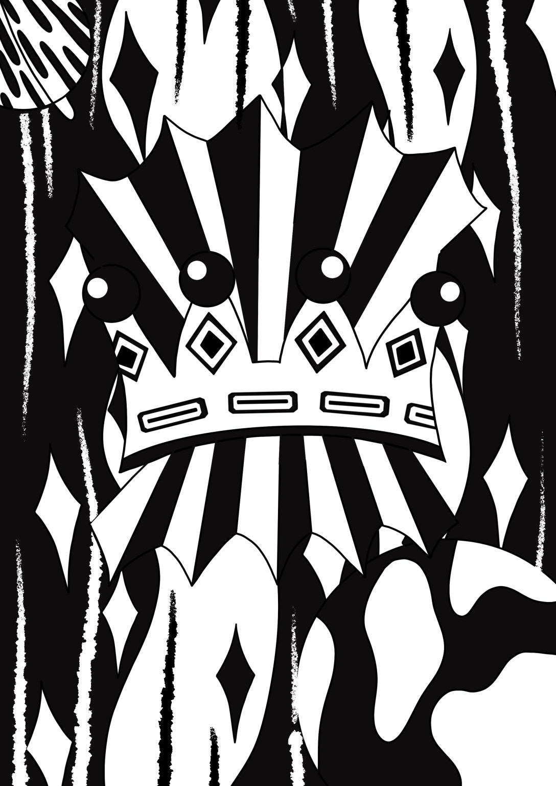 Comparing my original line art to the finished piece, I feel like the black and white have helped exaggerate the concept of ‘extraordinary’ even further. The stark contrast between the empty space and black blocking shows clearly what’s being communicated. The illustration is still abstract and therefore not completely clear on meaning, but what is clear is that it’s extraordinary. The focus is definitely on the crown, but also on the fact it’s floating in space, which I think is made clearer by the ‘torn paper’ effect. I feel like the line art is quite soft, whereas the addition of black and white has made it incredibly striking and bold. It’s now very powerful as an image. It’s commanding and eye catching, and immediately pulls your focus into the centre.