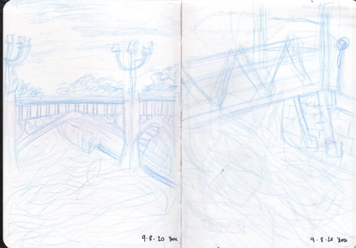 Despite my new sketchbook being intended for travel and taking out with me, I started filling it at home. I drew what I could see around me and from pictures I had taken or from ones I found online. I also used it just for doodling and drawing whilst I was paying attention to other things. I then brought it with me on a trip to York, sketching the city around me and filling it with various things. I then went back once I was home and added various things to the pages, either colour or more detail using other tools. I found a lot of freedom and joy from using this sketchbook and I’m looking forward to continuing filling it.