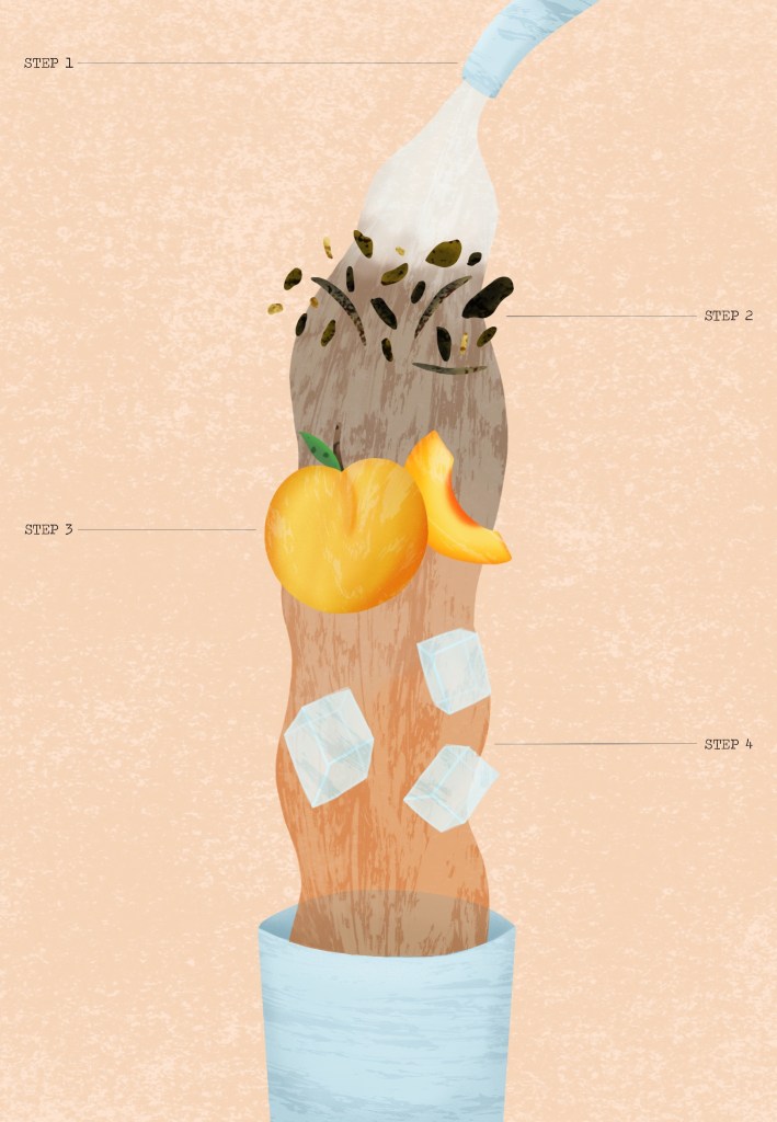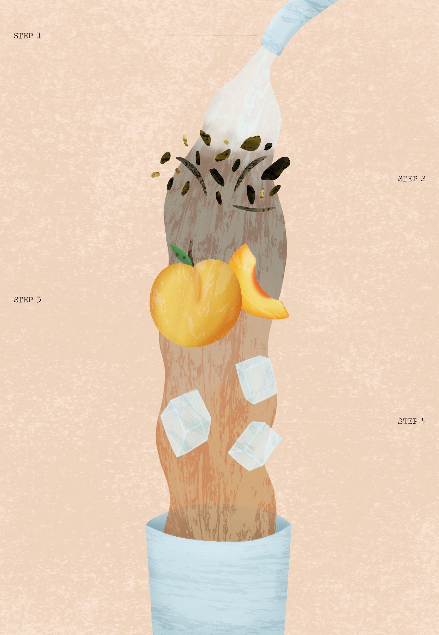 I decided to pick ‘making a cup of tea’ and chose to put a twist on this. Instead of my instructions showing how to make a regular cup of tea, I would be showing how to make iced tea instead. I love iced tea and drink it more than regular hot tea, and I think the process is pretty interesting too. I started by researching diagrammatic illustration on Behance and Pinterest, looking at how other illustrators had portrayed similar things. I really liked the dissection portrayal that was quite common in illustrations I found, showing each individual layer/item separated but still in order of how they would combine in the finished product.