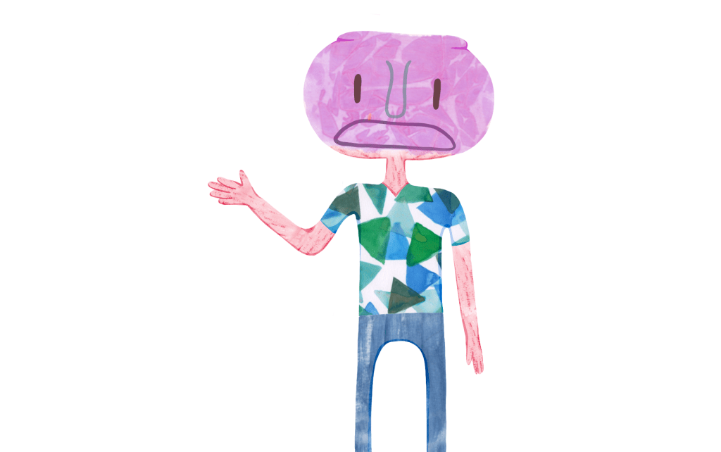 Once they had dried, I scanned in the textures and began digitally manipulating them in order to fully create my character. You can see from my video below how I approached this. I added in some shading once done and drew on the facial features. I was inspired by the sort of whimsical, bright, and fun cartoons that air on Cartoon Network, such as The Amazing World of Gumball and The Regular Show. I love this sort of character creation and the exaggeration of features and proportions. Upon showing this to a friend, she commented that it was obvious that it was inspired by the ironing board picture, which I was glad to hear.