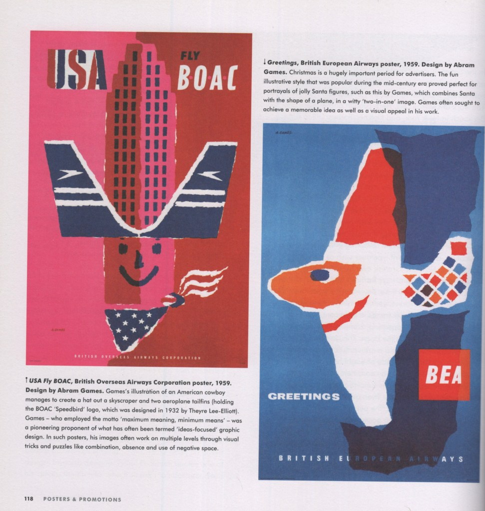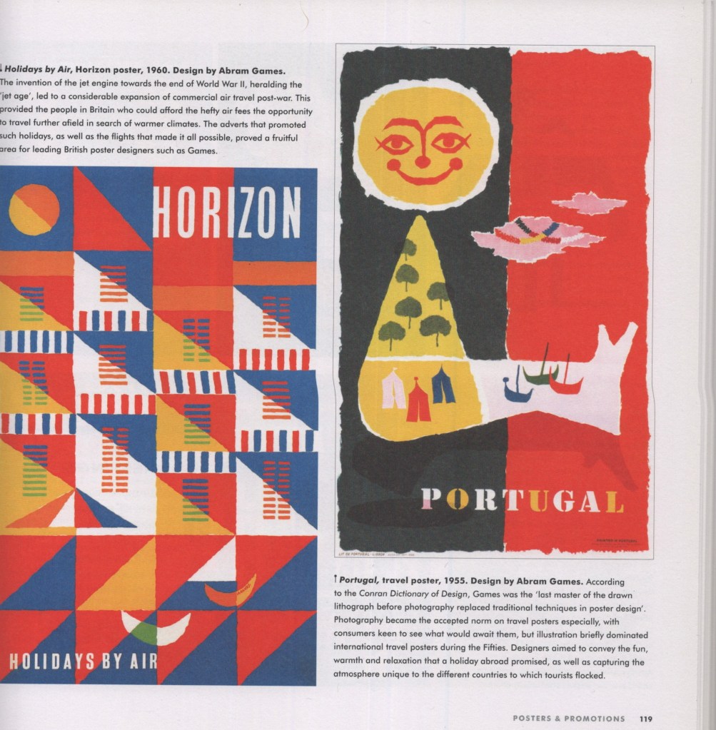 I started by looking through the book ‘Mid-Century Modern Graphic Design’ by Theo Inglis. The book contains examples of graphic design from the 1950s and is organised into categories based on how the designs were used. There is not a postcard section, so I decided to look through the poster chapter as it felt like the closest thing. Unfortunately not much was capturing my interest for this postcard design – however, I did find some colour palettes that I felt would fit well for my third design.