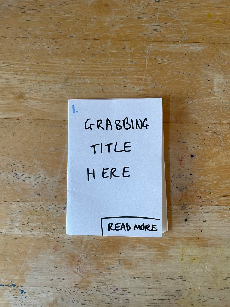I felt the biggest issue was that four blocks of text, a title, and contact details wasn’t a lot of content for an A4 leaflet. There would be a lot of empty space – which could be used for photographs and illustrative elements – but it really would be a lot for some of the folds. Fold number 1 is probably my favourite of the five, as it feels snappy, eye-catching, and fun. I was envisioning it being at the counter in a local business or similar. The other folds are more suitable for postage or for putting in a stand, similar to those I encountered as a child.