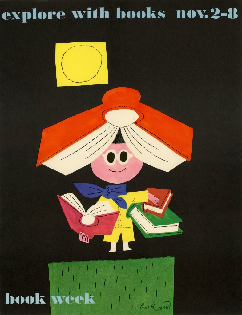 Each poster here tells a story using graphical elements. The playful markmaking and shapes used in the Book Week poster tell the story of an excited child exploring books and having fun with them. Rand’s usage of such bright colours against a black background draws the eye in and furthers this excitement. In contrast, the use of bright colours against a white background in the I Know poster helps draw the eye in to the text, the shapes and colours are simply used as framing tools. The text here also tells a story, not in the words themselves, but in the way Rand has manipulated the text – it seems it is ‘growing’.