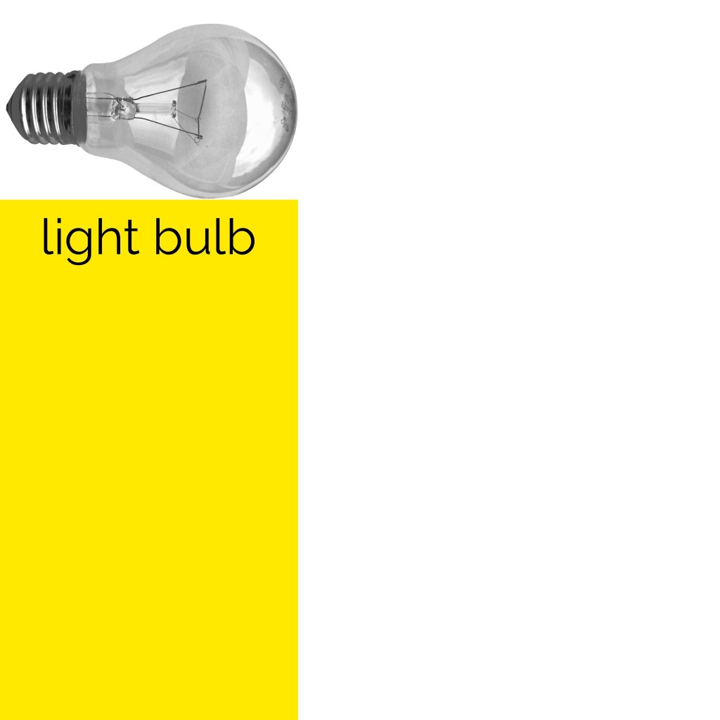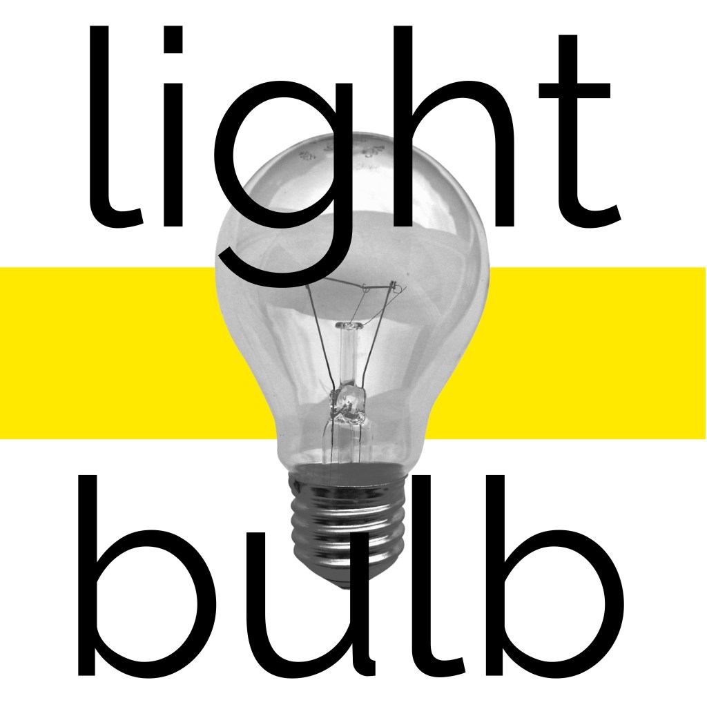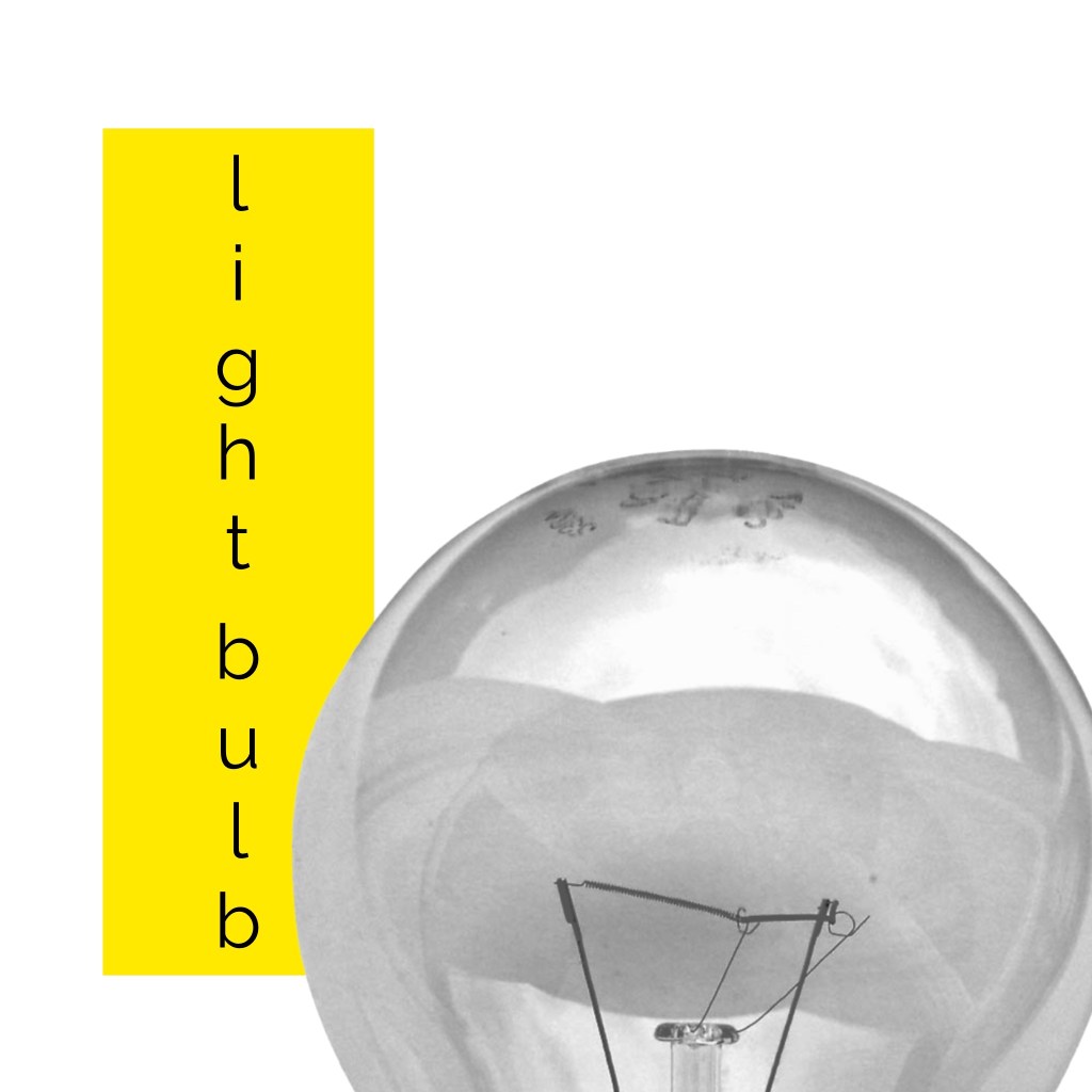 This exercise was focused on exploring composition to see how altering the placement of colour, text, and imagery changed the visual dynamics of a design. I was asked to use only an image of a light bulb, the words ‘light bulb’, and a block of colour of my choice. I had to develop as many arrangements of these three things as I could possibly think of, being playful and inventive in my choices. I was then asked to edit these arrangements down to about 20 designs that represent the different approaches I explored.
