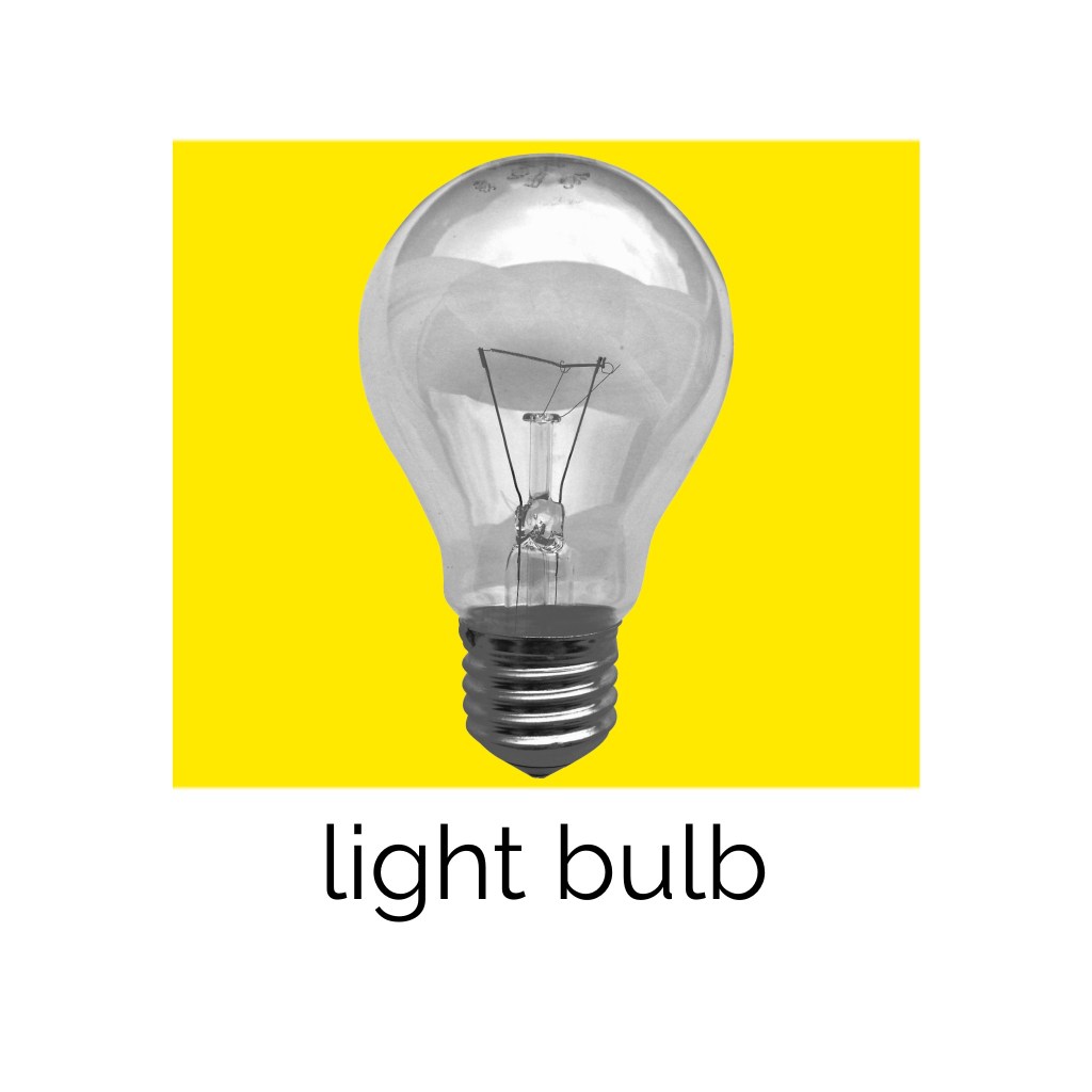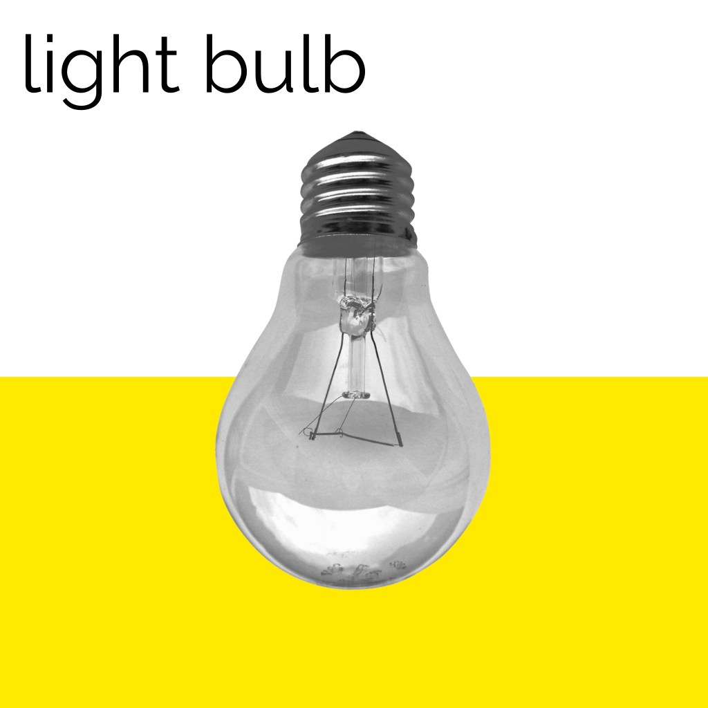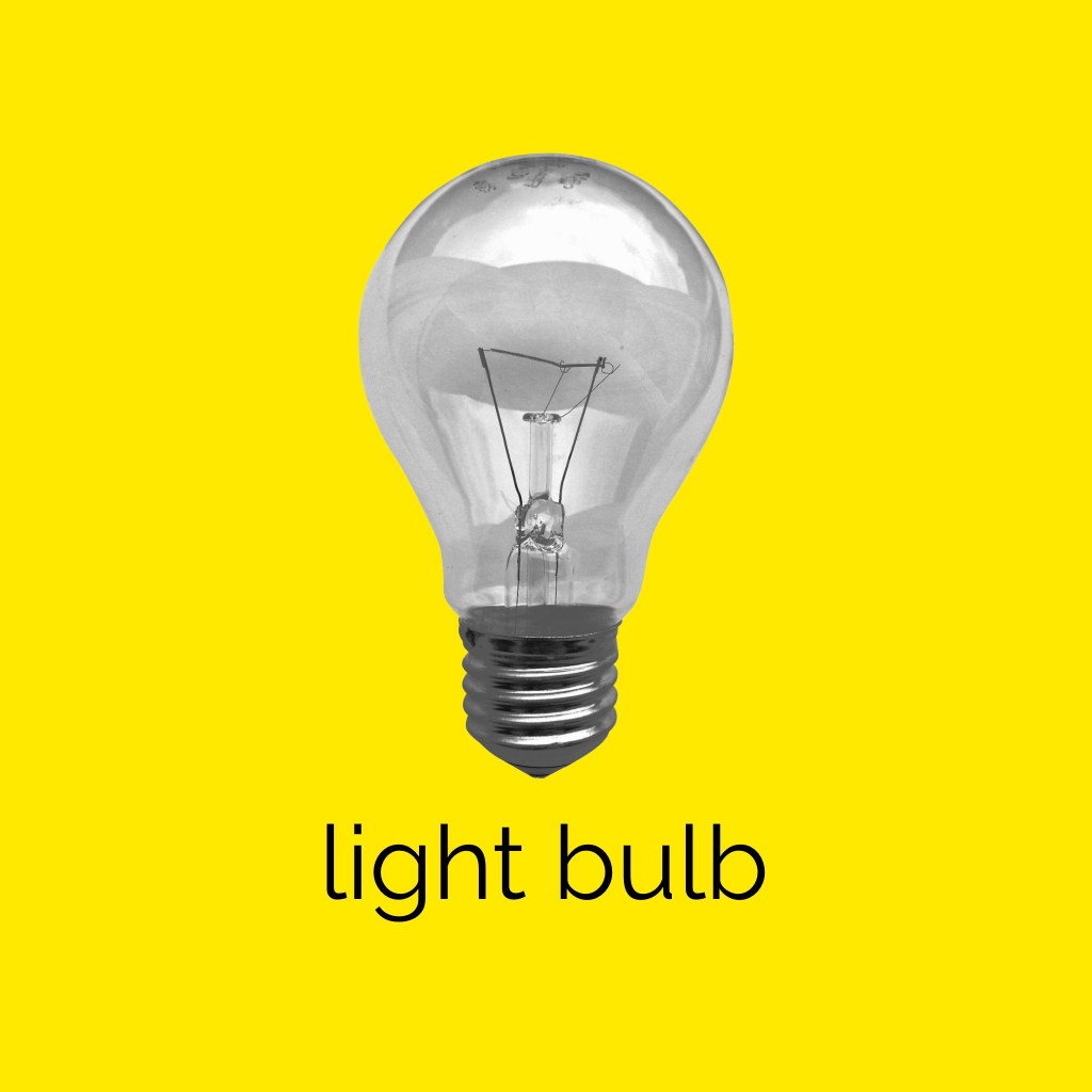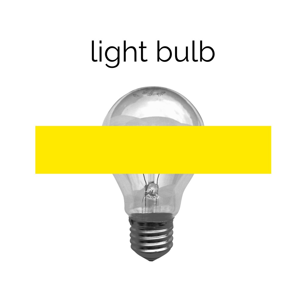 This exercise was focused on exploring composition to see how altering the placement of colour, text, and imagery changed the visual dynamics of a design. I was asked to use only an image of a light bulb, the words ‘light bulb’, and a block of colour of my choice. I had to develop as many arrangements of these three things as I could possibly think of, being playful and inventive in my choices. I was then asked to edit these arrangements down to about 20 designs that represent the different approaches I explored.