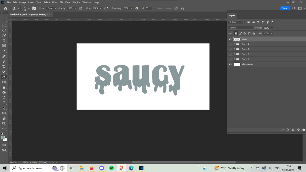 Saucy was another difficult word to work with in this format. There were a few definitions, one referring to sex in a humourous way, and another being covered in sauce, but I chose to go for ‘rude and showing no respect’ which was fun to show off with mismatched letters ignoring the rules of where they’re supposed to be. For swagger, I felt that having each letter slightly spread out and descending the g’s emphasised the confident ‘swinging movement’ of walking with swagger. I like how both of these turned out.