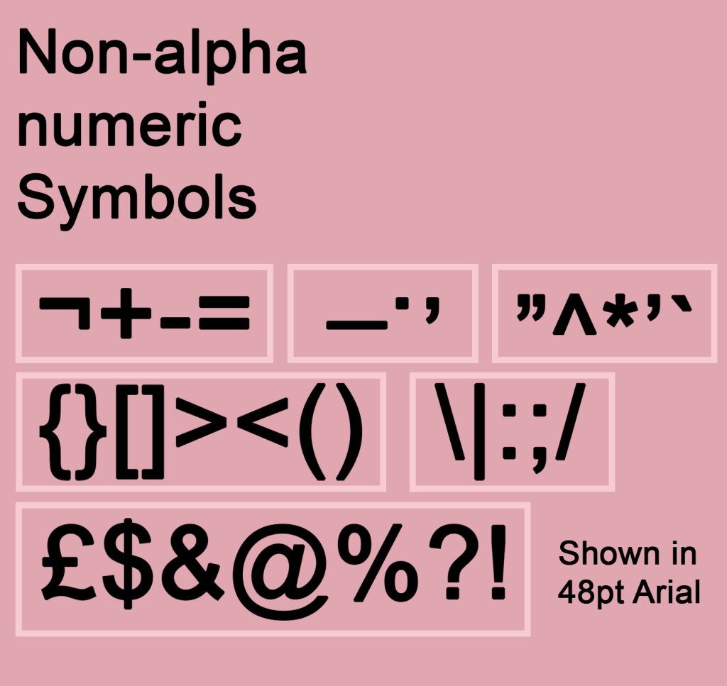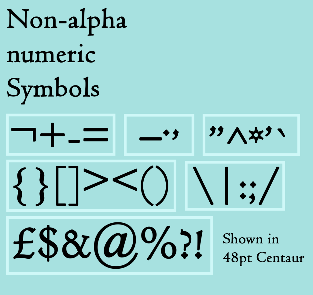 To start, I designed two graphics showcasing the non-alphanumeric symbols that I could find just using my keyboard. I chose a serif and a sans serif font for each, showing how they change between two very different typefaces. I really enjoyed this exercise, grouping each character based on similarities such as where it sits (on the baseline, above, below) or what sort of element it has, and then designing the layout. I enjoy working in space in this way very much!