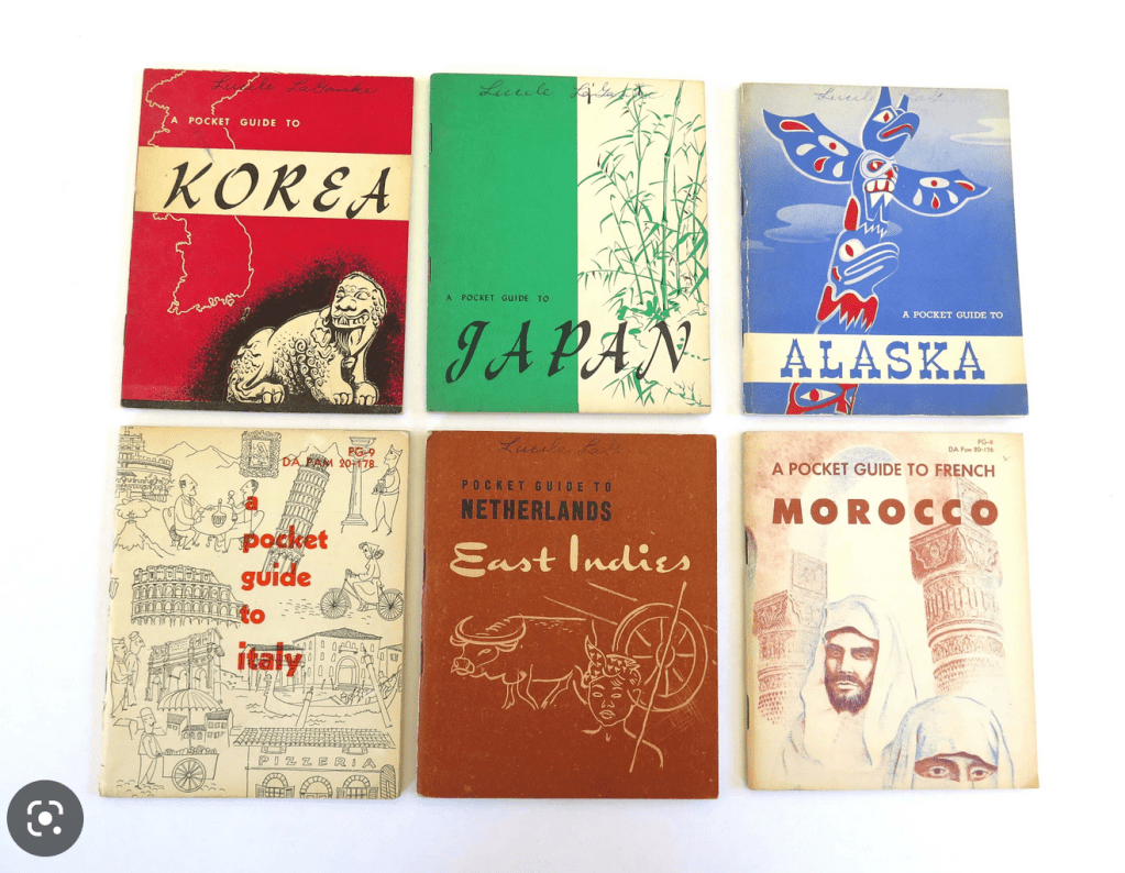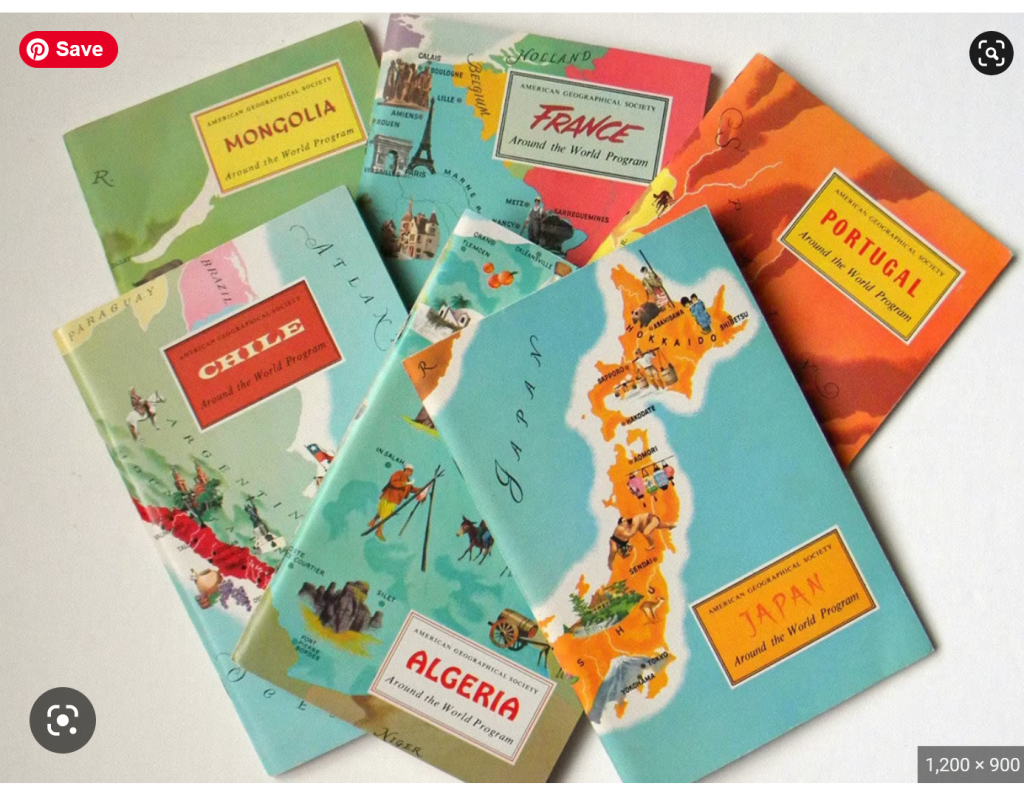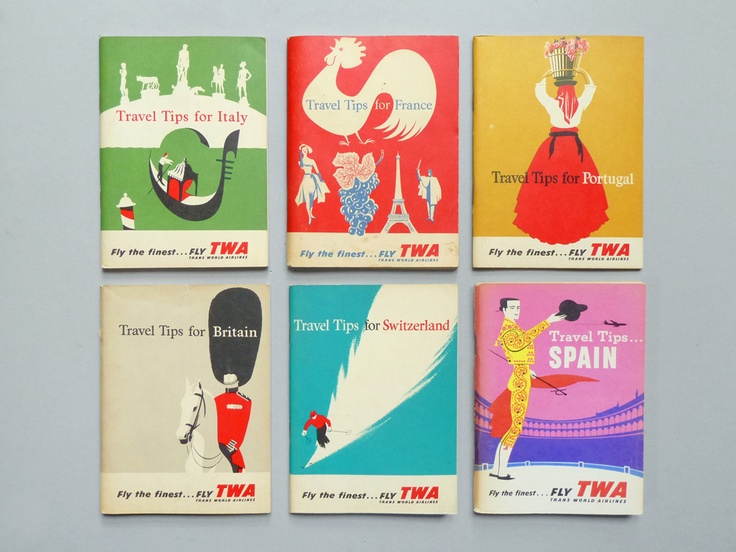Back when I was designing travel guides for Key Steps in Illustration, I had a hard time finding reference material. Travel guides typically use photographic designs in their covers, showcasing the location and usually the most recognisable or popular tourist spot. Now, I feel like I have a better idea of what to look for, and luckily for me, the Mid-Century era was filled with illustrative travel guides! I mostly wanted to get a sense of the layouts of the covers, rather than looking at the designs themselves, so I could figure out where to place text, and what kinds of fonts to use. I collected some reference imagery for the covers, then separately collected references for typefaces I was interested in.