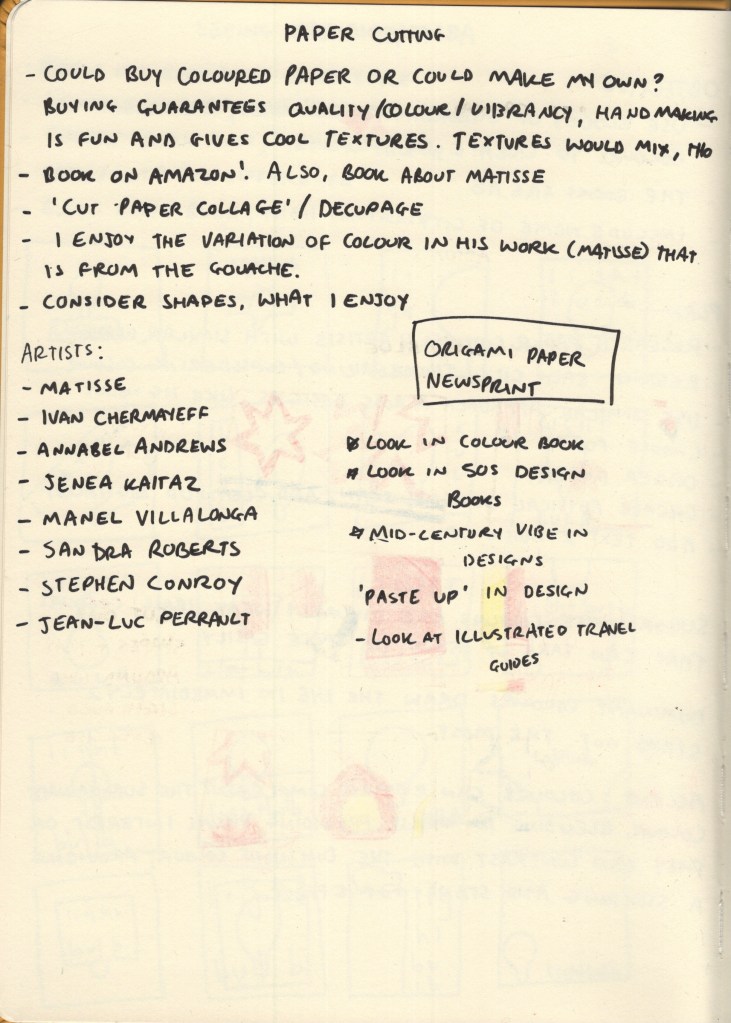 Before researching each of the 10 cities, I began collecting some papercutting references, starting with Cezanne. My tutor had recommended his work to me and I found it particularly inspiring. I began adding his work to a Pinterest board to reference later, then expanded my research to other artists.