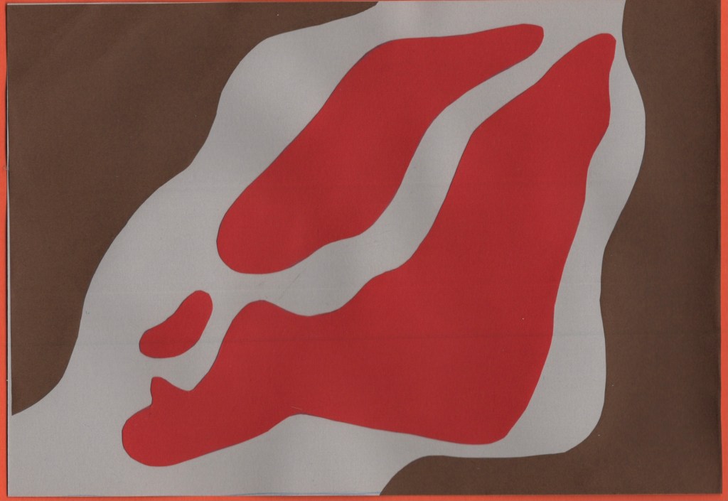 To capture the shape accurately, I took a zoomed-in screenshot of google maps and then traced this with a bold black line in Procreate. I was still aiming for rough, misshapen cut-outs, but I wanted to ensure it looked like Montreal. I then traced this onto a piece of printer paper and transferred it to my red paper to make cuttings. I’m glad I thought to do this instead of drawing from observation, as I think it would have only vaguely resembled the city!