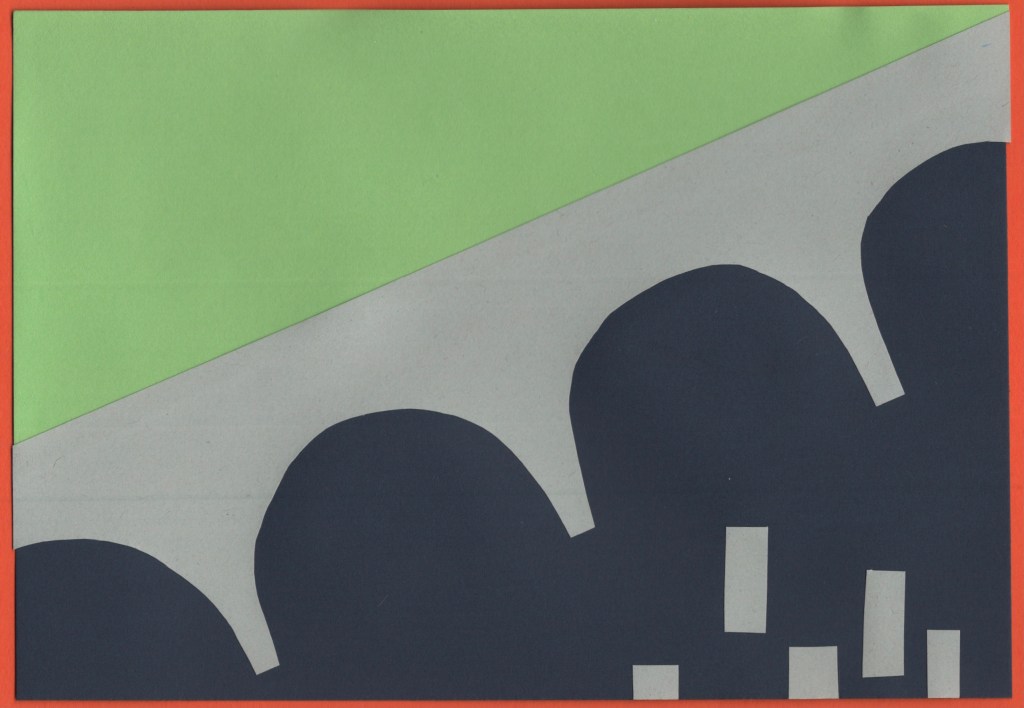 Coming up with ideas for this city was fun, there are a lot of unique shapes to play around with, and I especially enjoyed figuring out how to make recognisable objects look more abstract. The design I chose for my final piece is supposed to represent the harbour as seen from above – lines upon lines of boats docked and waiting. I am really happy with how I developed this idea, and I think the finished piece looks fantastic. I wanted each piece of paper to be slightly different in size and shape, and I think I struck a nice balance of ensuring it didn’t look too messy whilst still fitting that goal.
