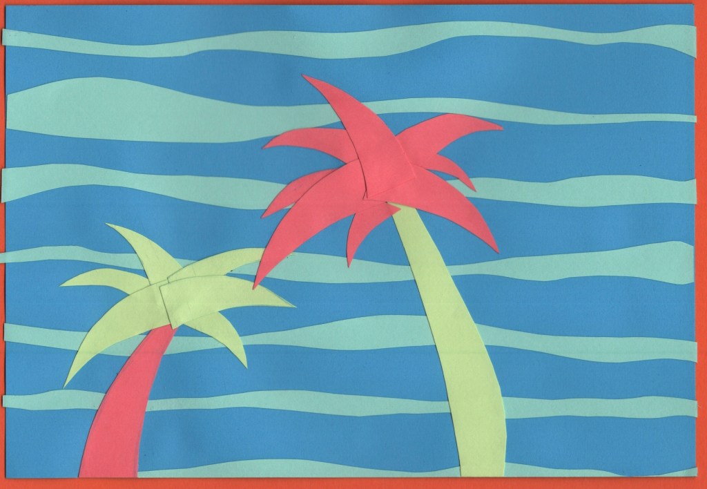 I was unsure of the design of this piece to start with, as I felt like I was playing it too safe. Just having palm trees on the cover didn’t feel abstract enough. I didn’t feel as passionate about any of the other pieces, though, and I was excited to explore ways of organising the cut-out leaves. I also loved subverting the colours and using pink in this way.