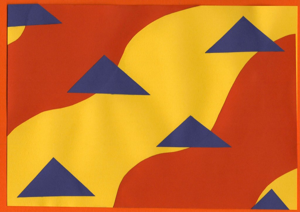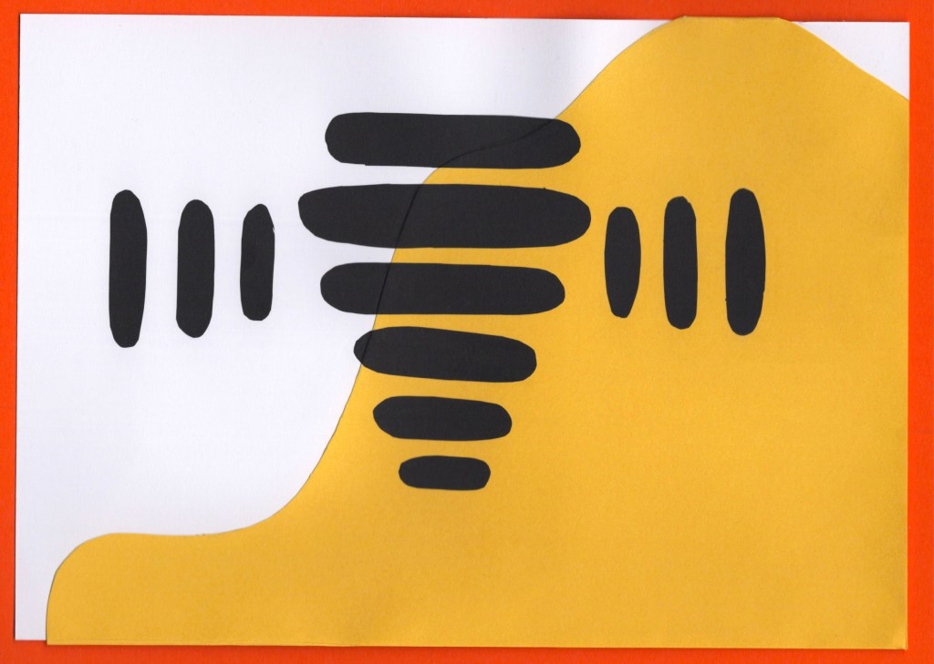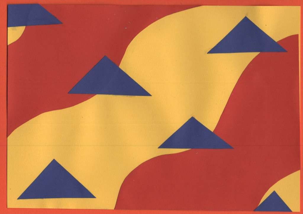 Sand against spices with the triangles of market stall roofs is the visual aim of my chosen design – and it fits into my theme of repeating items. This was a relatively easy piece to put together. I used a yellow A5 sheet for the background and cut two pieces of orange paper to go on top. Then, I cut and placed the triangles to represent the roofs. I’m really happy with how it turned out, it feels very true to the vibes of the city!