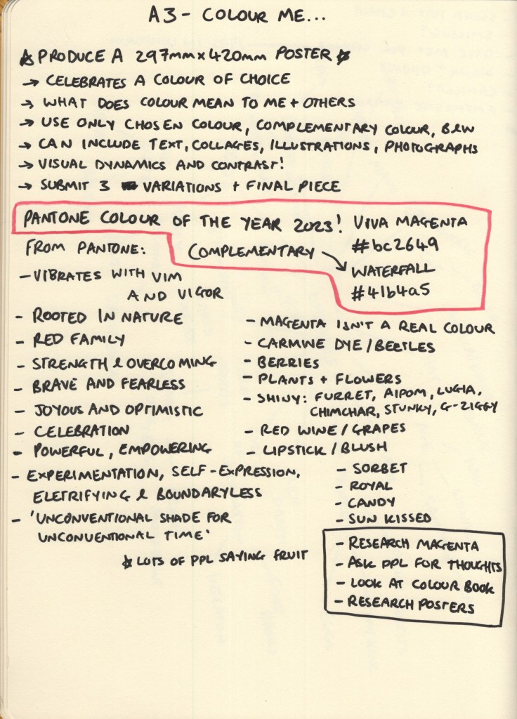 I think it’s cool that Pantone’s perception of Viva Magenta – brave, empowering, experimental, and breaking down boundaries – are all things I have learned how to embody throughout the exercises and assignment. I really have celebrated the colour through both my work and my design process. I’m so excited to see how Parts Four & Five turn out with this newfound freedom in my work, and whether I’ll be able to maintain it through until the end.