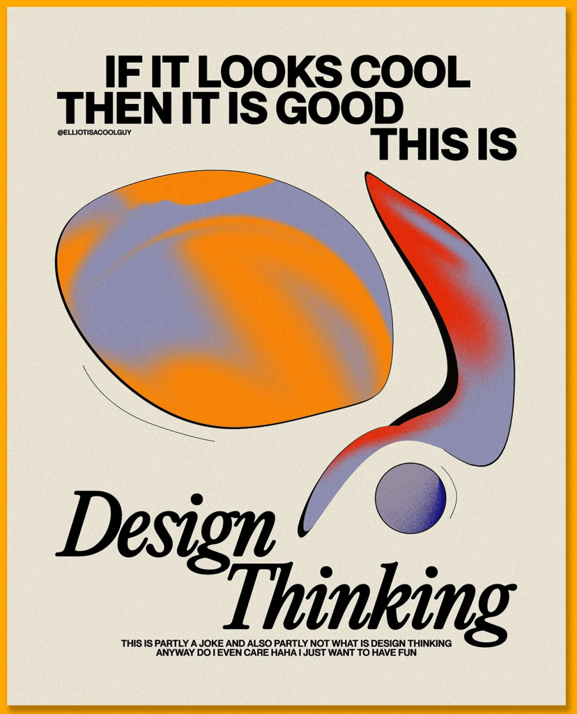 I love seeing designers in similar places to me sharing their experiences and work in a casual way. Often there feels a huge disconnect between me and ‘the design world’, but these designers make it feel a bit more real and closer to home. I also see a lot of themes and trends across their styles that are also present in my work, which always reminds me that I am a part of the current ‘era’ of design, even unconsciously. I would love to research the question of ‘what comes first, the trends or the articles calling them trends’ in my critical reviews at Level 2.